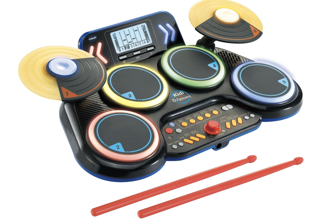 - Lieferumfang: 1 x VTech Kidi DJ Drums / Kindersicheres Batteriefach, Abschaltautomatik und Lautstärkeregler / 2 Drumsticks / 4 x AA/LR6 Demobatterien / Deutsche Version / Alter: 6-12 Jahre / Art. Nr.: 80-572604
