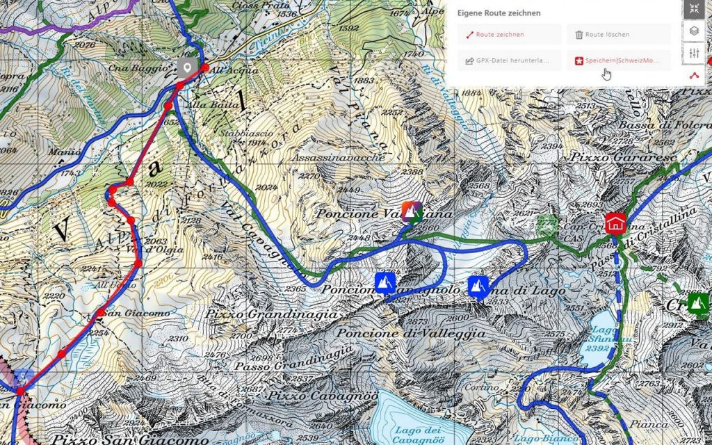 - Ihre eigenen Touren auf der Webkarte von SchweizMobil einzeichnen und archivieren
