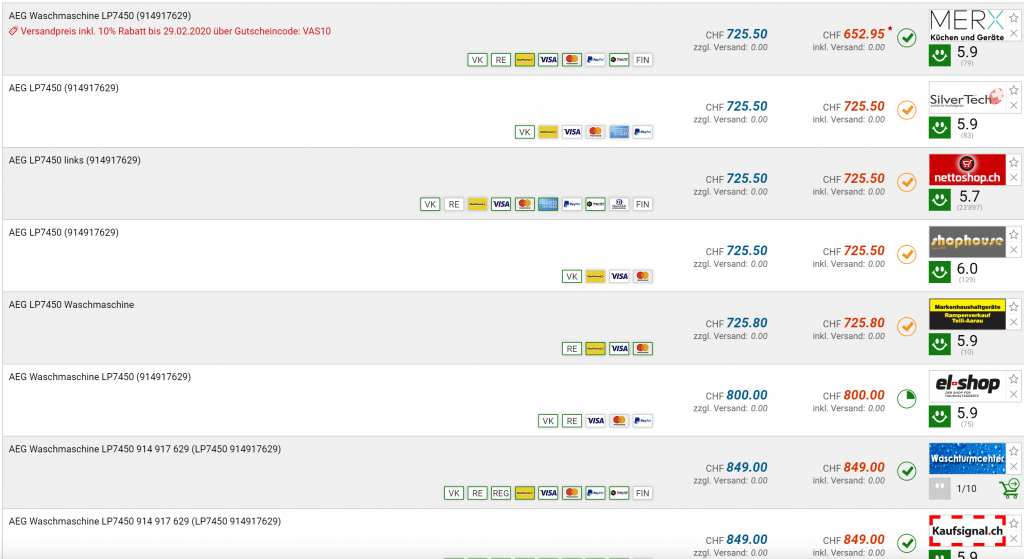 Waschmaschine: Zweitbester Preis und Bestpreis: CHF 652.95