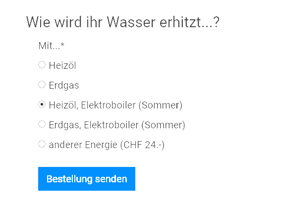 ...hängt der preis nicht von der energiequelle ab? bei heizöl oder erdgas dürfte sich der rechnungsbetrag nach meinem verständnis lediglich auf chf 10 (inkl. mwst & porto) belaufen.