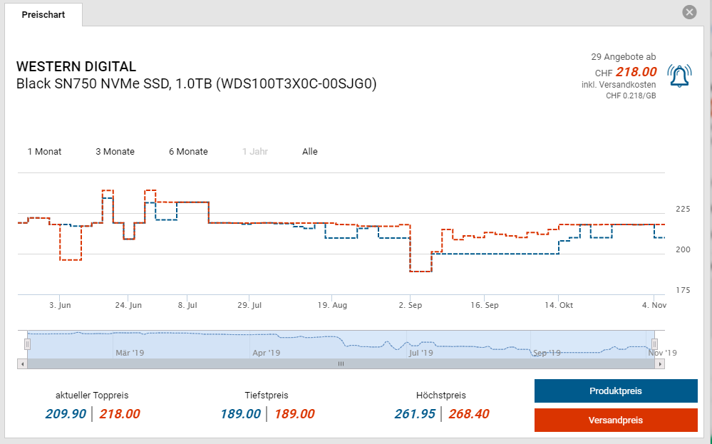 So toll ist der Preis nicht. Ich hab mir an den Amazon Prime dazs eine Crucial P1 1TB NVMe für unter 100CHF geholt, Black Friday wird da ähnliche deals haben