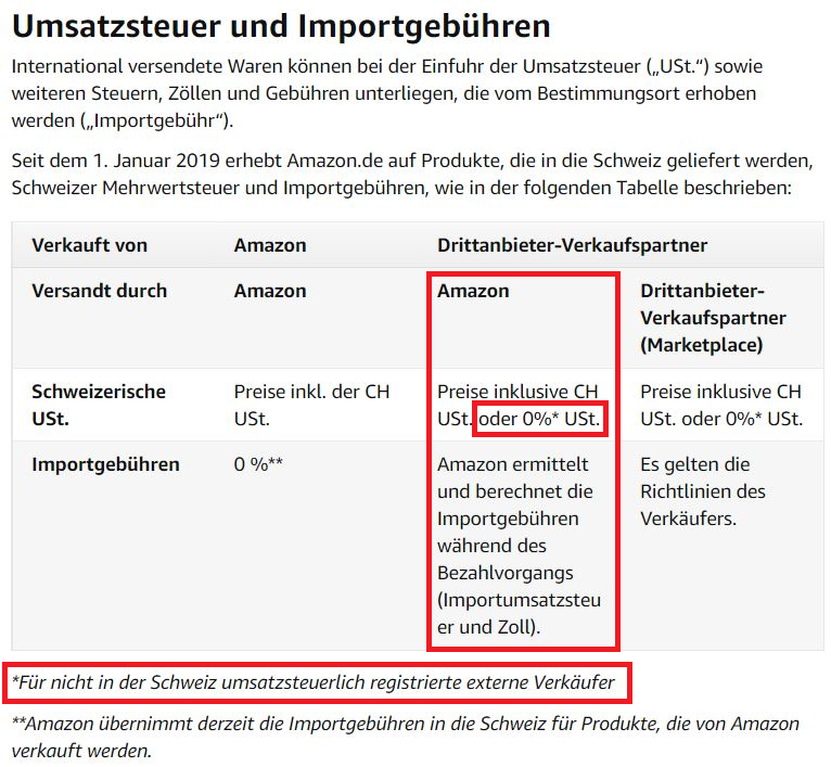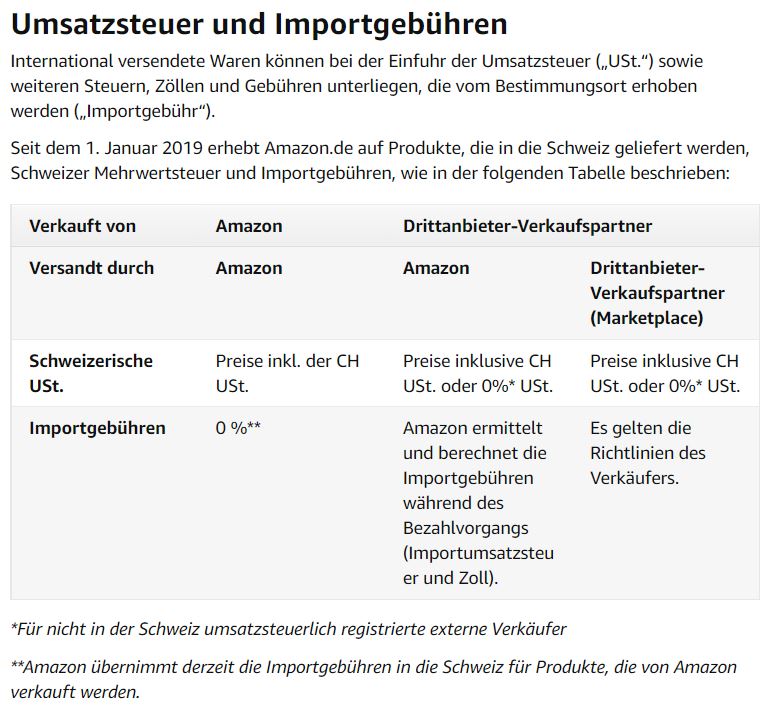 Wenn der Versand durch Amazon geschieht, aber der Verkäufer nicht in der Schweiz registiert ist, wird das Paket genau wie jedes andere aus dem Ausland behandelt.