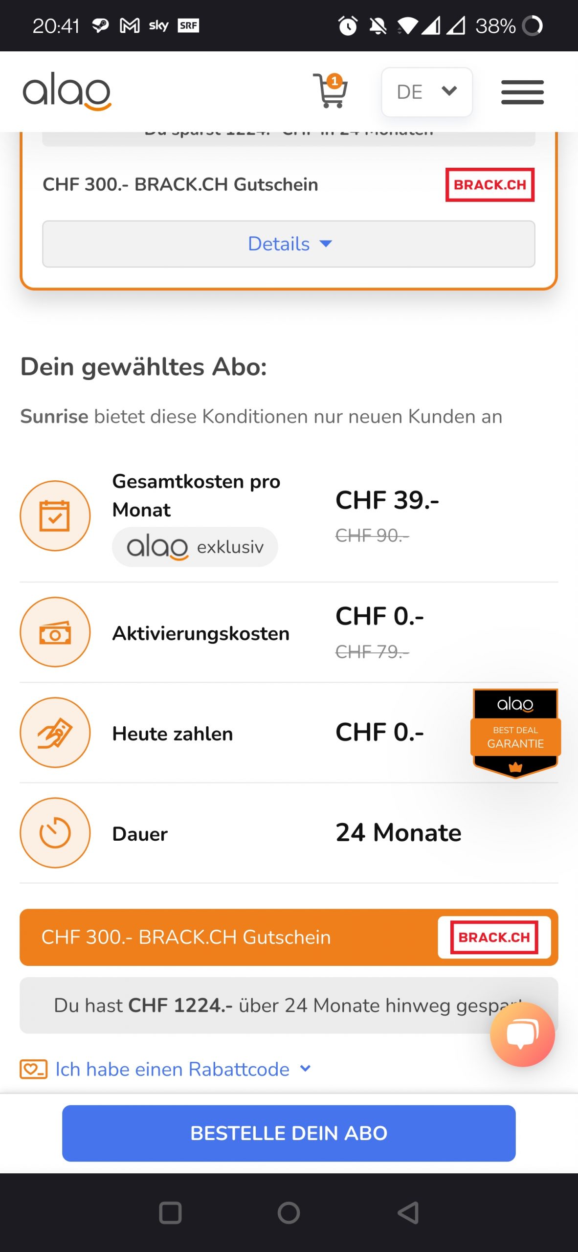 alao9 jedoch schon - gibt neben den 300 CHF Gutschein für Brack nochmal 25 CHF extra.