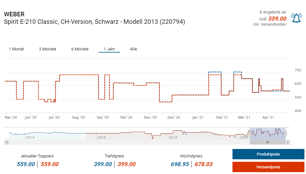 Bei Hornbach kann man sich derzeit den Gasgrill Weber Spirit E-210 Classic durch die Tiefstpreisgarantie mit Verweis auf das Angebot von Bauhaus für 399 Franken zum neuen Bestpreis von CHF 359.10 sichern.