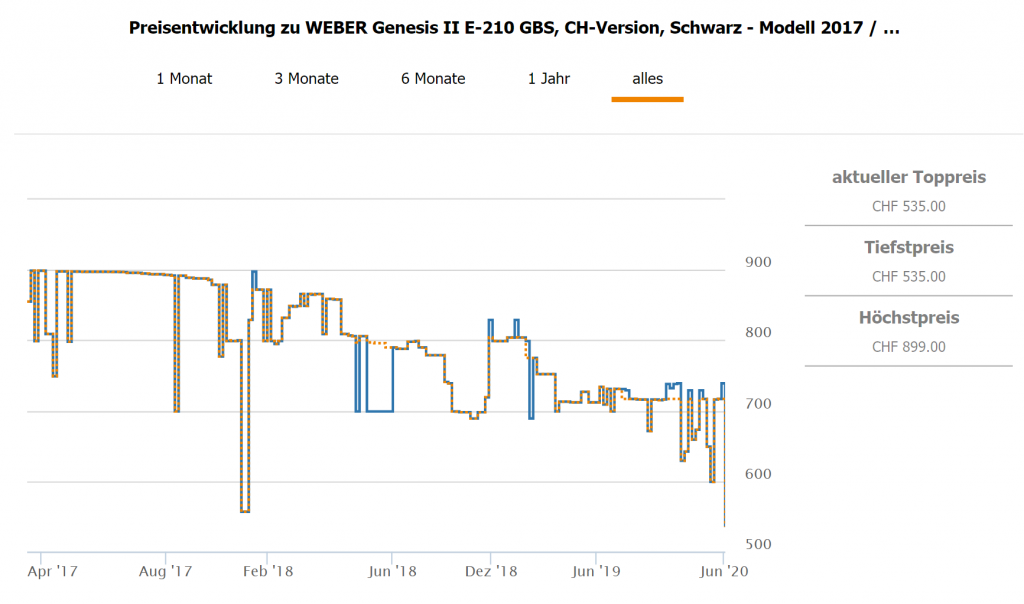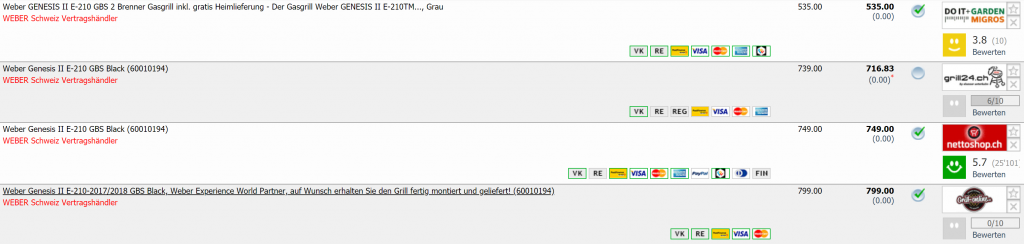 Bei Migros doit garden gibt’s gerade den Weber GENESIS II E-210 GBS 2 Brenner zum neuen Bestpreis von CHF 535.- inklusive gratis Lieferung. Zudem kann man sich noch zum Newsletter anmelden und erhält noch einen 10.- Gutschein, der kombinierbar ist. So bezahlt man noch CHF 525.-