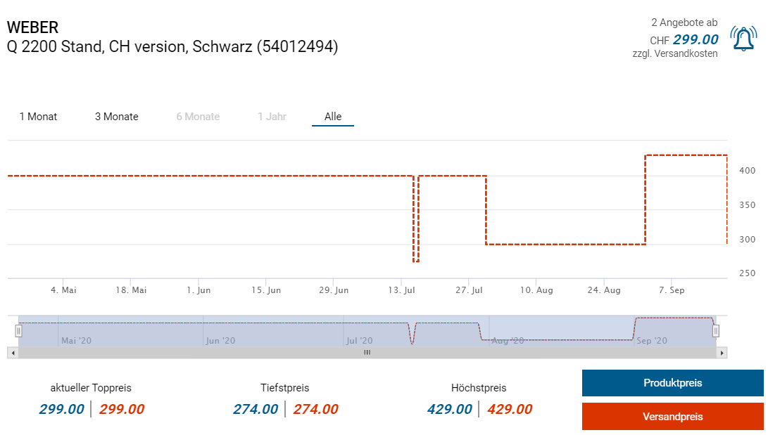 Bei Nettoshop gibts derzeit den Gasgrill Q2200 Black Stand inkl. Hitzeschild von Weber zum Aktionspreis von 299 Franken. Mit dem Code „VISNET-20-1912“ spart man nochmal 20 Franken. Allerdings soll es ihn auch schon günstiger (nämlich für 239 Franken) bei Migros Do It + Garden gegeben haben.
