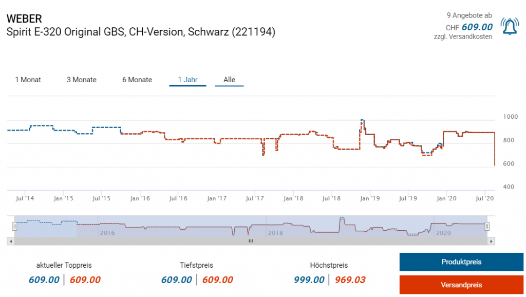 Bei nettoshop gibts derzeit den Gasgrill Spirit E-320 Original GBS vom Markenhersteller Weber in Aktion für 609 Franken. Mit dem 20 Franken Bon kann man den Preis nochmals etwas weiter drücken und kommt so auf 589 Franken. Der letzte Bestpreis lag bei 670 Franken laut Preispirat-Recherche.