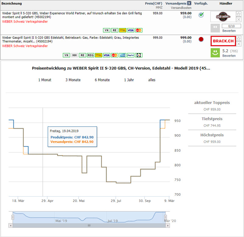 Im Blick Top-Deal gibt es diese Woche den Weber Spirit II S-320 GBS Edelstahl Gasgrill zum Bestpreis von CHF 699.-.