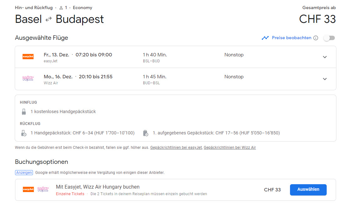 Im Moment findet man ziemlich günstige (Wochenend-)Flüge nach Budapest. Schön um sich den Weihnachtsmarkt dort anzuschauen. Gefunden über Google Flights.