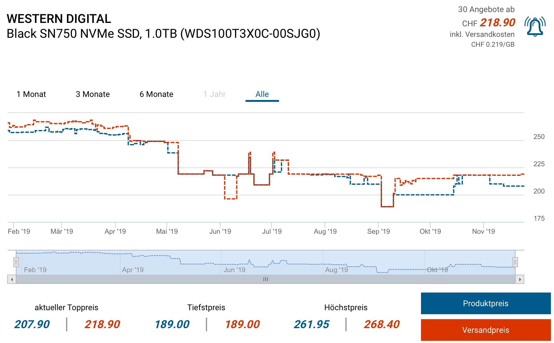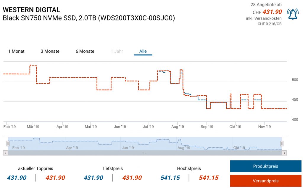 1TB für 164.99 EUR, mit Versand in die Schweiz für 149.33 EUR / ~165.- CHF, zweitbester Preis gemäss toppreise 218.90 CHF