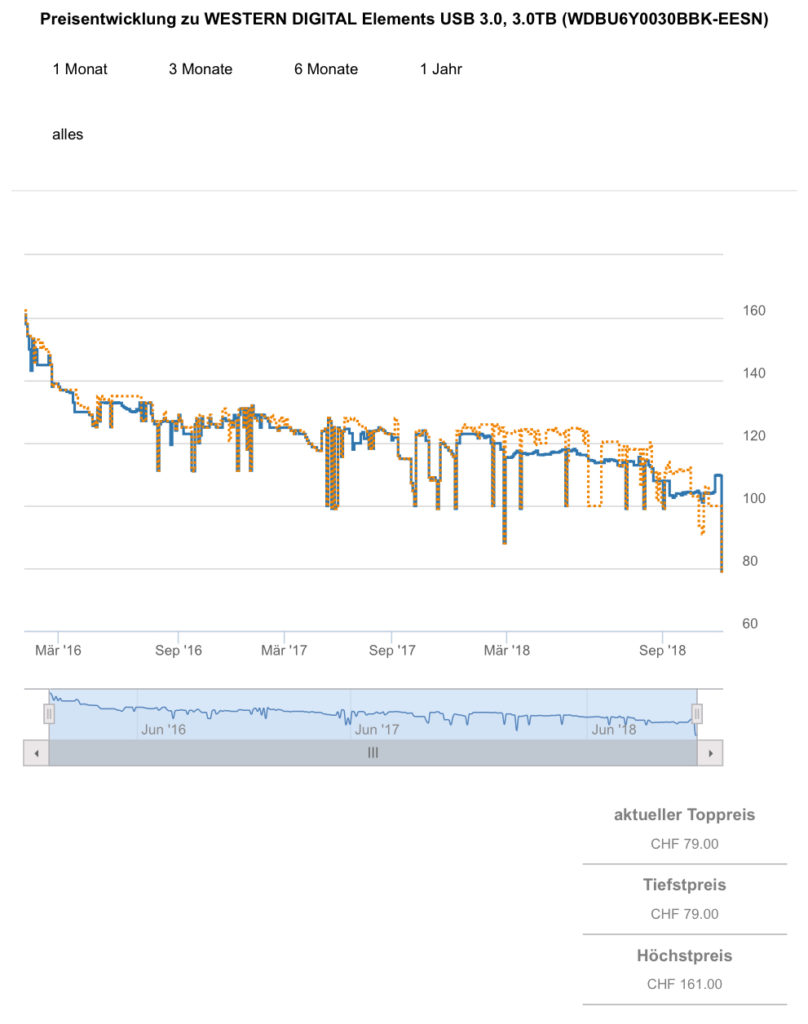Bei microspot gibt es aktuell die WESTERN DIGITAL Elements USB 3.0 mit 3.0TB für 79.- CHF.