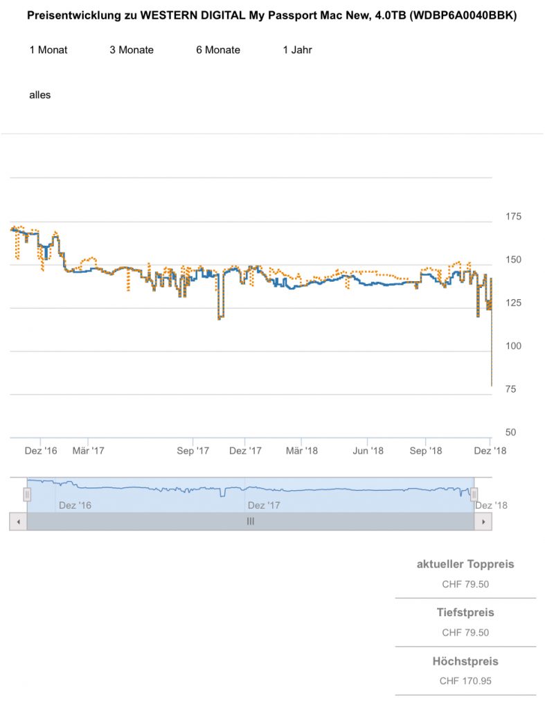 Gemäss toppreise war der bestprice bislang bei 118.35 CHF, der zweitbeste Preis aktuell liegt bei 139.95 CHF.