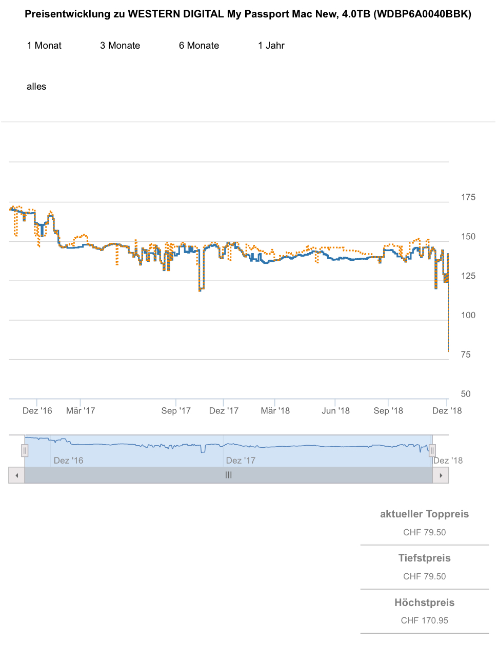 Gemäss toppreise war der bestprice bislang bei 118.35 CHF, der zweitbeste Preis aktuell liegt bei 139.95 CHF.