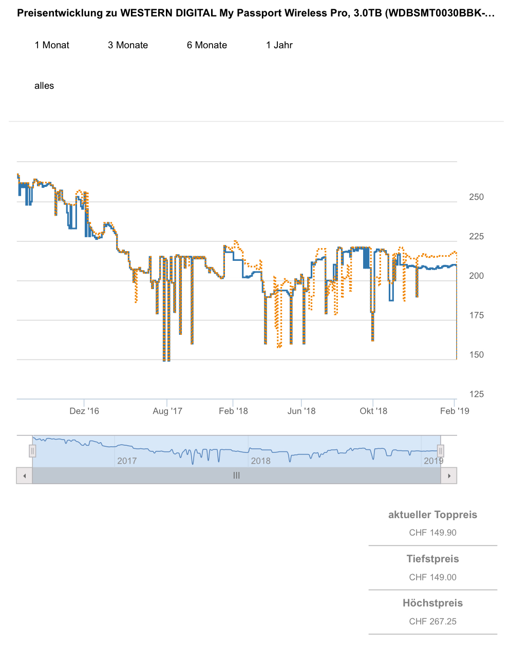 Gemäss toppreise war der bestprice bislang bei 149.- CHF, der zweitbeste Preis liegt aktuell bei 217.38 CHF.
