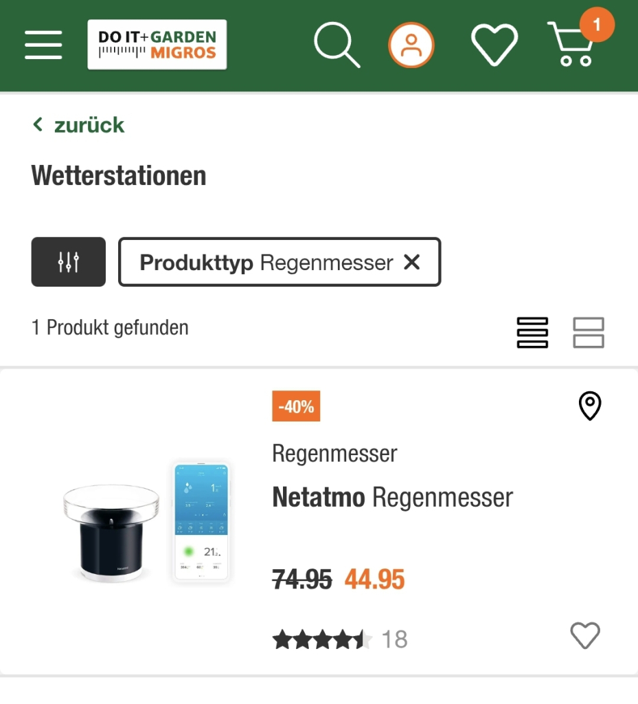 Aktuell gibt es bei Migros DoIt 40% Rabatt bei Wetterstationen - inkl. Netatmo.