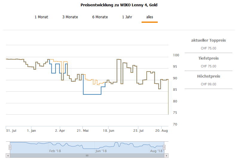 Best price gemäss toppreise über alle Farbvarianten lag bislang bei 79.- CHF (Schwarz), der zweitbeste Preis ist aktuell bei 87.90 CHF (ebenfalls Schwarz). In Gold gab es das Handy noch nie günstiger als für 86.10 CHF inkl. Versand.