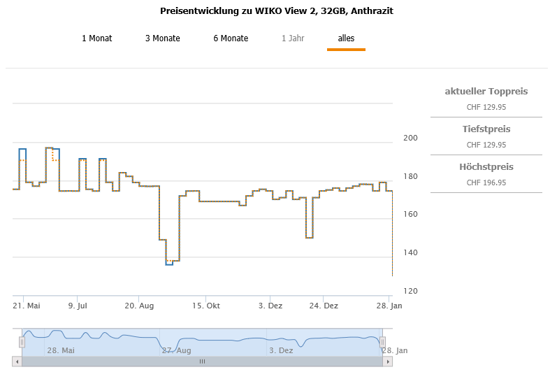 Bestprice bislang waren 138.10 CHF, der zweitbeste Preis liegt aktuell bei 174.50 CHF.