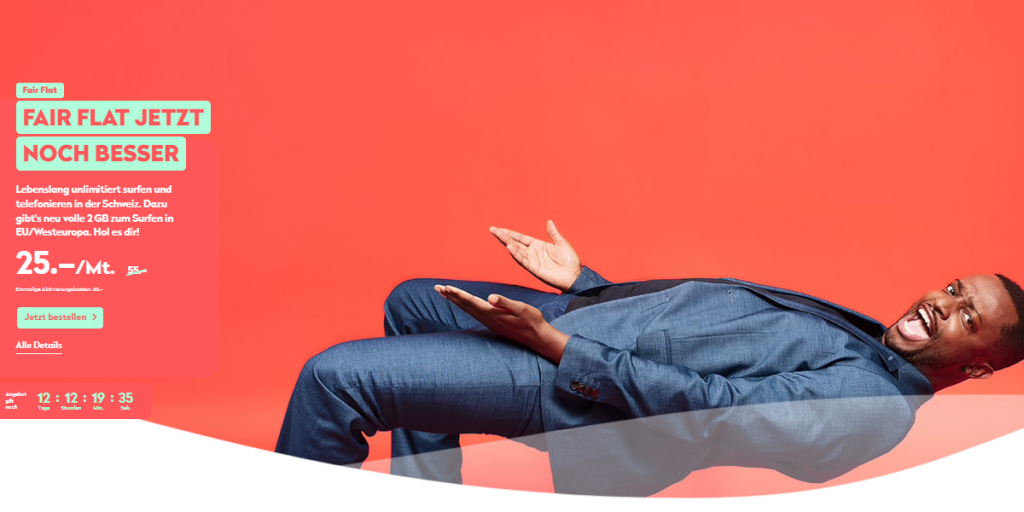 Das Angebot gilt lebenslang und hat keine Mindestvertragsdauer. Die Promo gilt, wenn du bis 17. Januar 2022 abschliesst. Du kannst jederzeit mit einer Frist von 60 Tagen kündigen.