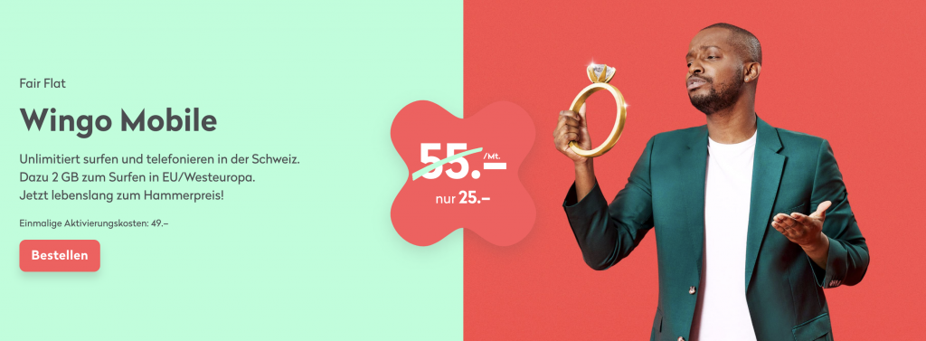 Bei Wingo erhält ihr noch bis 08.05. das Wingo Fair Flat Abo für CHF 25.- anstatt CHF 55.- pro Monat!