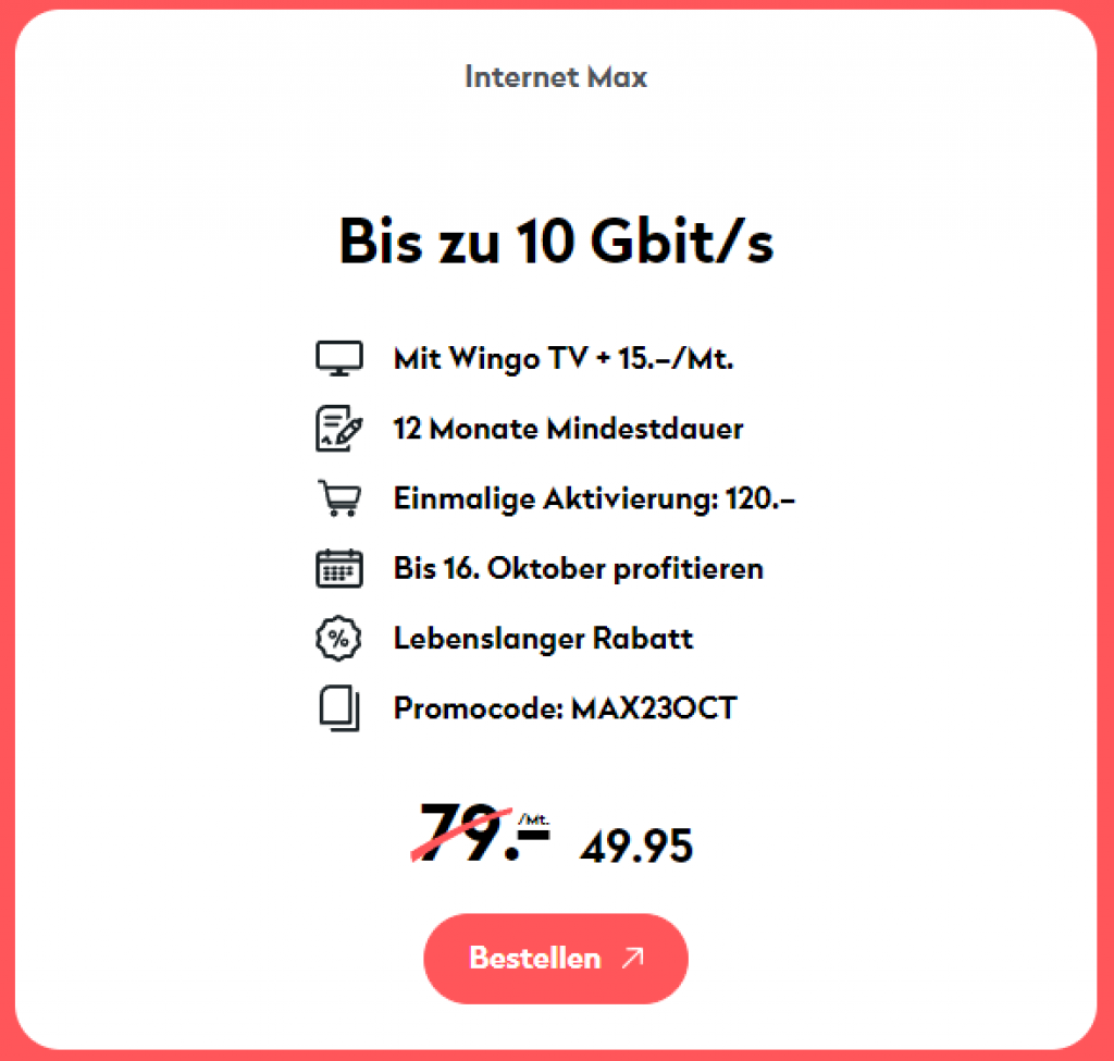 Wingo Internet Max – Bis zu 10Gbit/s im Swisscom-Netz mit lebenslangem Rabatt