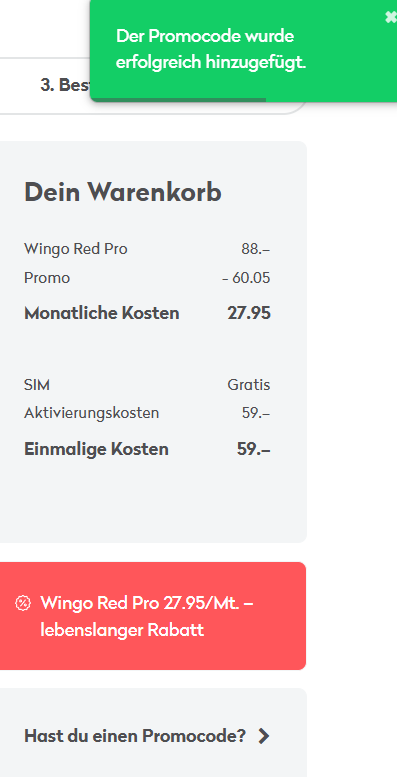 Flexibles Kündigen und Wechseln jederzeit möglichFür Bestandskunden: Ihr könnt euer Abo einfach wechseln, indem ihr den „B4SCHEXT“ Rabattcode im Kundenportal MyWingo unter „Mein Abo“ anwendet.