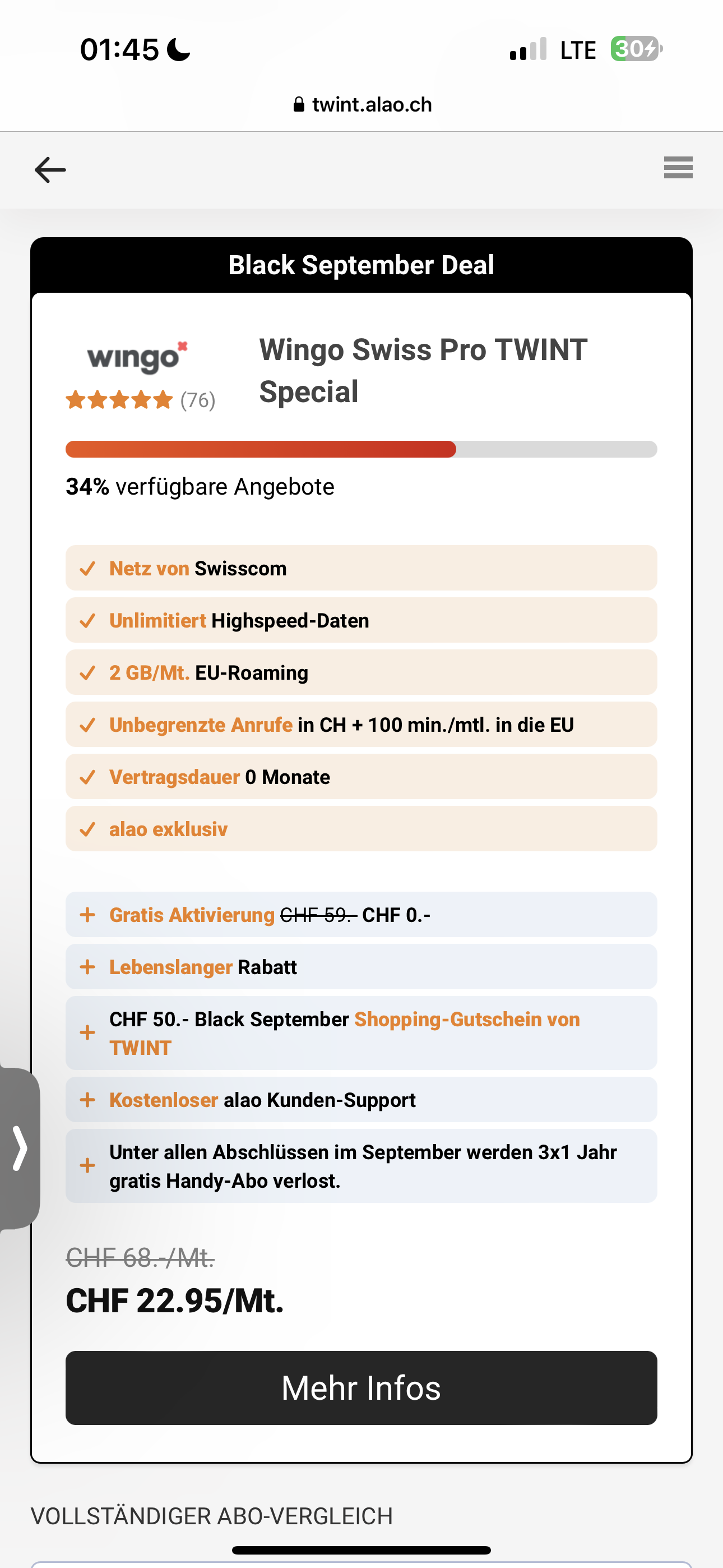 Ich empfehle euch jeweils auch die aktuellen Angebote via alao.ch anzuschauen. Aktuell das gleiche Abo für 22.95 OHNE Aktivierungsgebühr und bei Bedarf 5G für 5.- statt 10.-