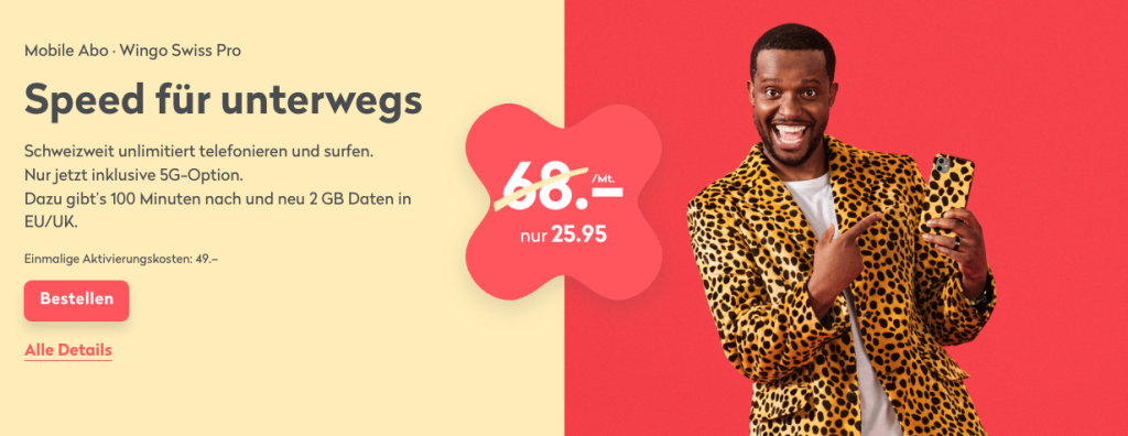 Bei Wingo gibt’s aktuell das Wingo Swiss Pro Abo in Aktion und neu sogar mit 2 GB Roaming in EU/UK + 5G-Option!