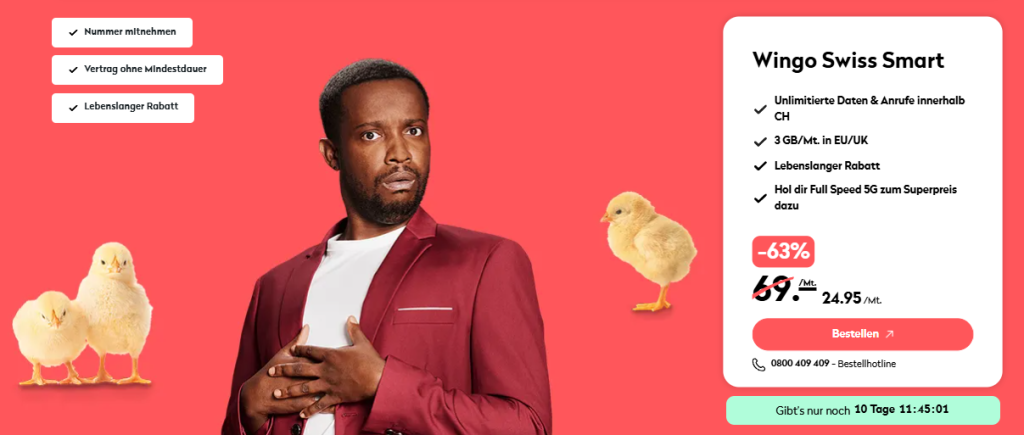 Das Angebot ist bis zum 20.04.2025 gültig. Bestehende Wingo-Kunden können problemlos wechseln, indem sie den Promocode SMART25APR im Kundenportal myWingo unter „Mein Abo“ eingeben.