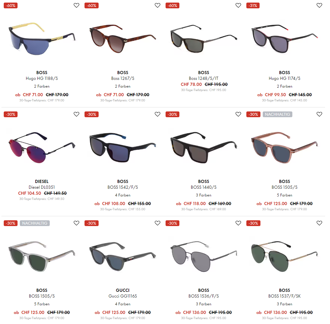 Bei Sonnenbrillen hat Fielmann eine Bestpreis Garantie und unterbieten jeden Preis um 10%, auch von online shops. Einfach zur Info...