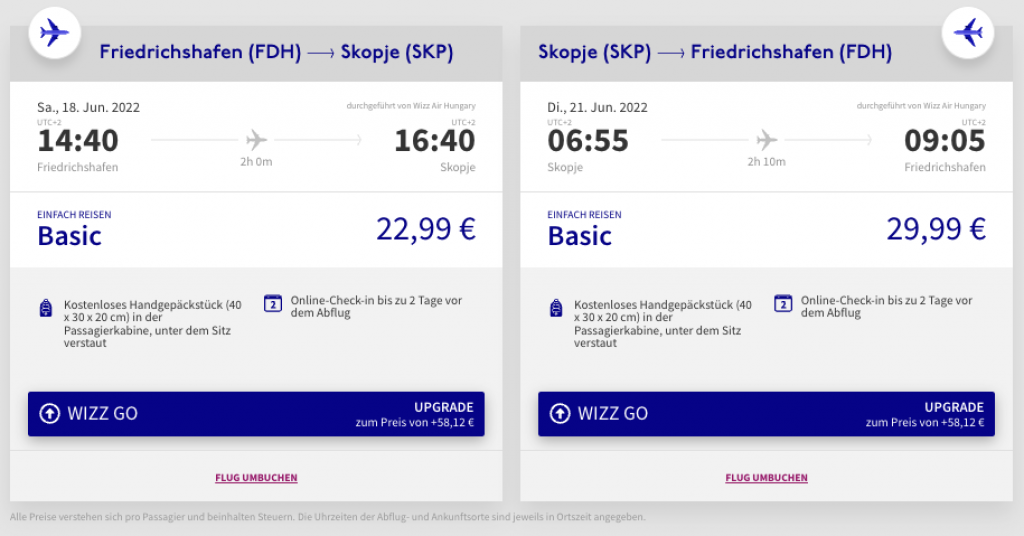 Wizzair: Friedrichshafen - Skopje Ende Juni ab CHF 30.90 pro Flug