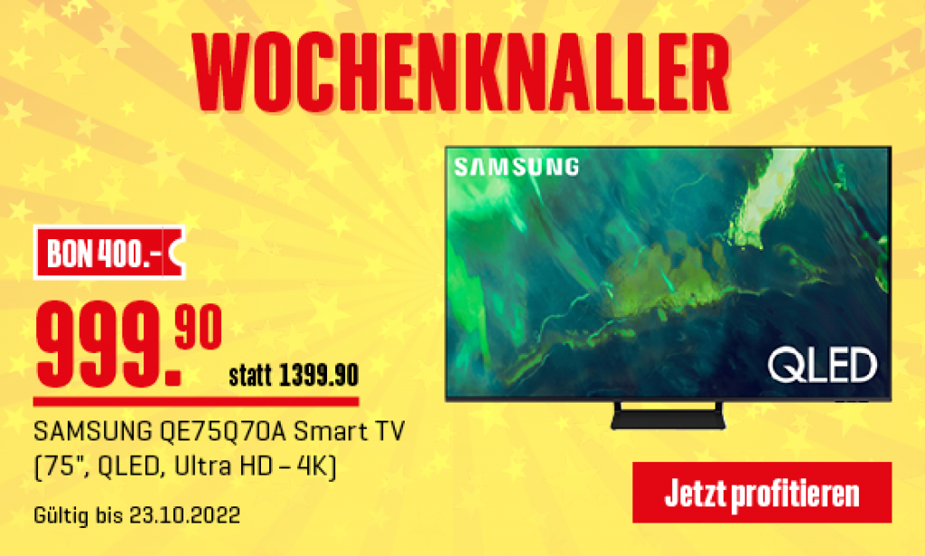- 75 “ (189 cm) QLED-Fernseher mit einer Auflösung von 3840 x 2160 (Ultra HD 4K)