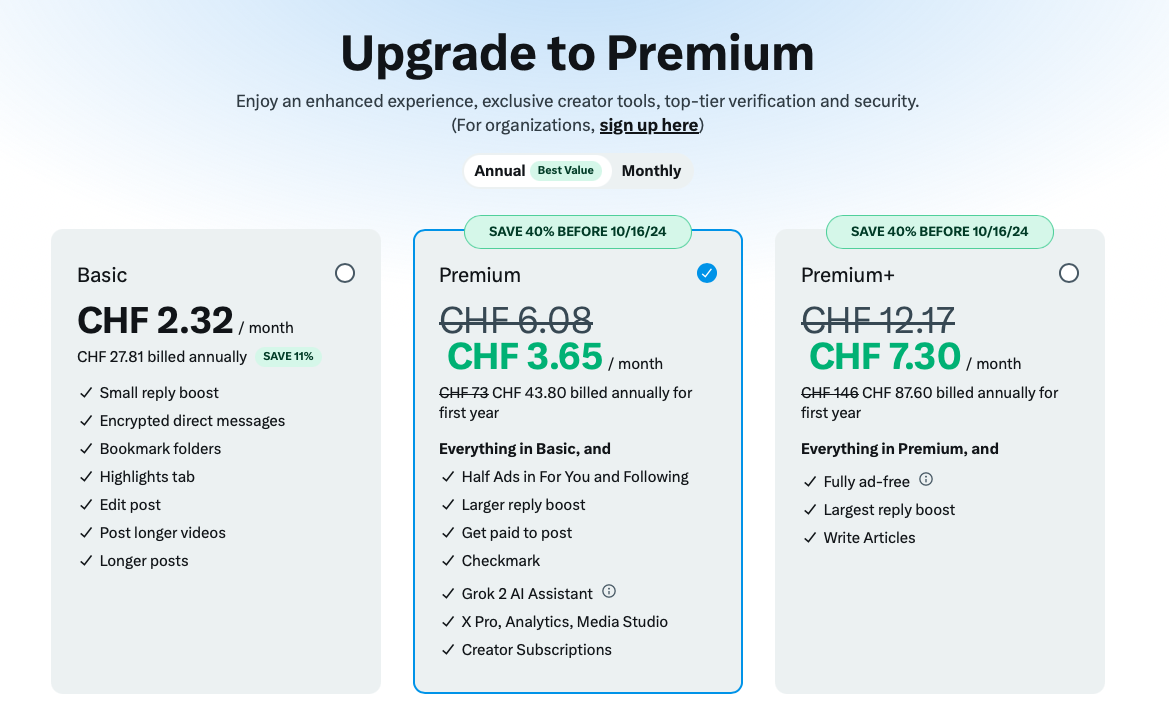 Der Deal ist nur auf der X Website (Desktop) gültig, nicht in der App.