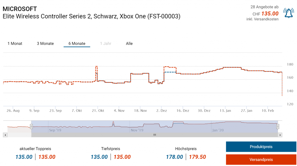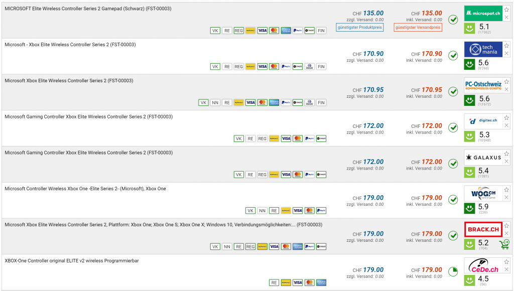 Bei microspot erhält man gerade den Xbox Elite Wireless Controller Series 2 für CHF 135.- Setzt man zudem den 10.- Coupon ein (Gutscheincode: MSP10) sogar für CHF 125.- Zweitbester Preis ist bei CHF 170.90, Bestpreis war bei CHF 152.70