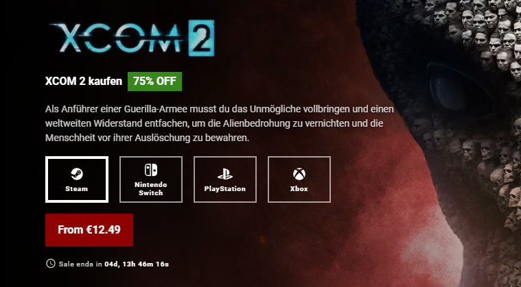 Im 2K-Store ist die XCOM 2 Collection für Nintendo Switch und Steam um bis zu 75% günstiger erhältlich.