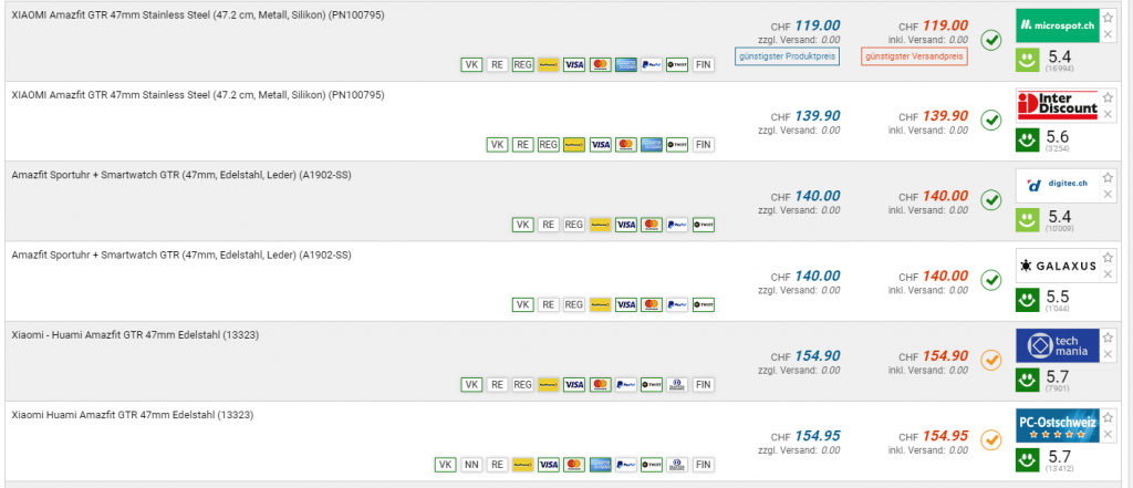 Bei Microspot gibt es momentan die XIAOMI Amazfit GTR 47 Smartwatch für den neuen Bestpreis von CHF 109.-. Der vorherige Bestpreis war CHF 125.90. Der zweitbeste Preis beträgt CHF 139.90.