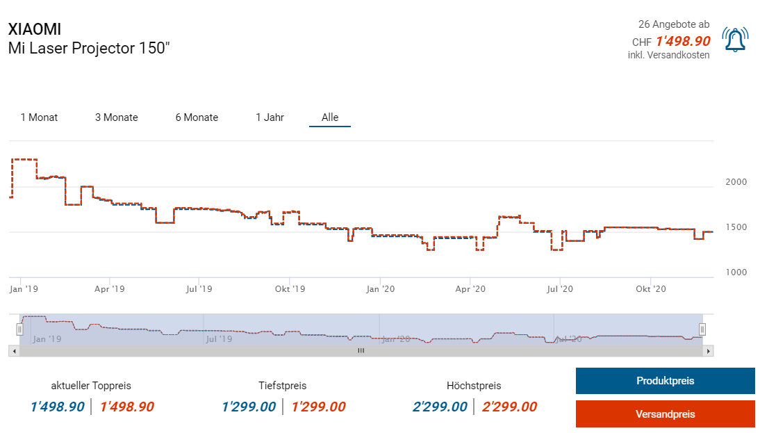 Bei digitec gibts heute den Full-HD Laser-Projektor von Xiaomi zum Aktionspreis von 1199 Franken. Laut Preispirat-Recherche gabs das Ding schon mal so günstig bei fnac (vor 5 Monaten).