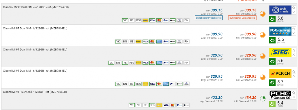 Bei techmania gibt’s gerade das Xiaomi Mi 9T mit Dual SIM für CHF 309.15, das ist neuer Bestpreis. Zweitbester Preis (eines Shops der nicht zur gleichen Gruppe wie PCP gehört) beträgt CHF 434.- Vorheriger Bestpreis war CHF 399.-