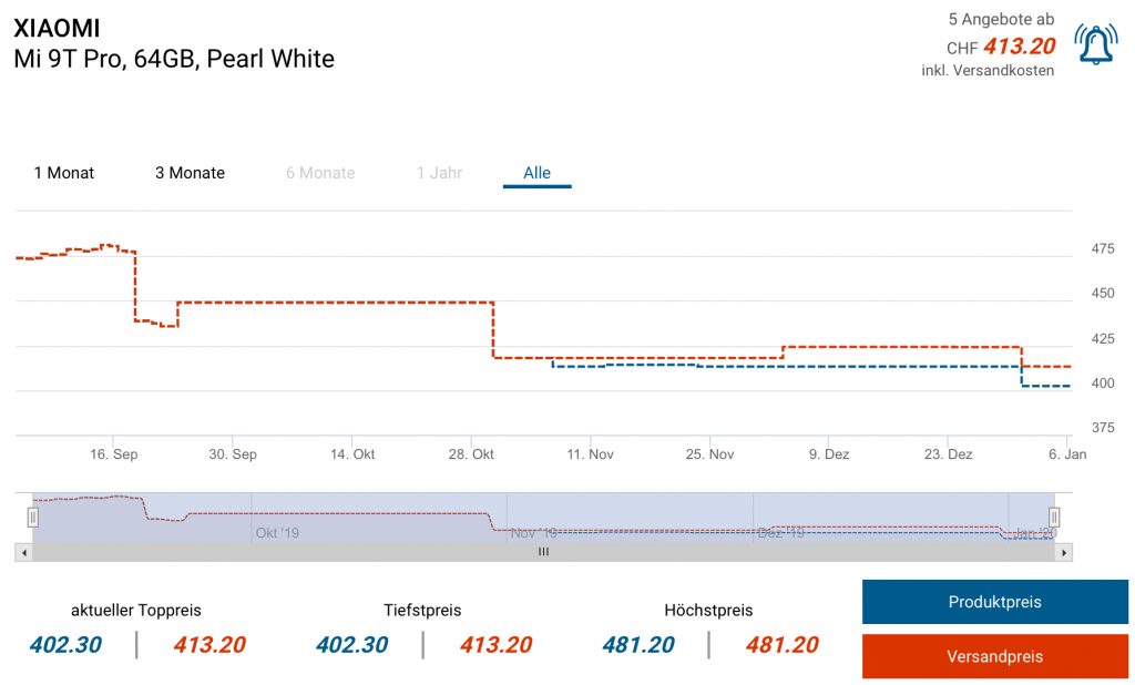 Bei amazon.es gibt es aktuell das XIAOMI Mi 9T Pro, 64GB in Weiss oder Blau für je 349.99 EUR.