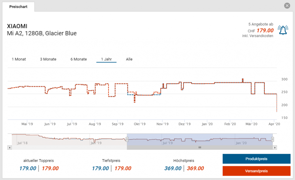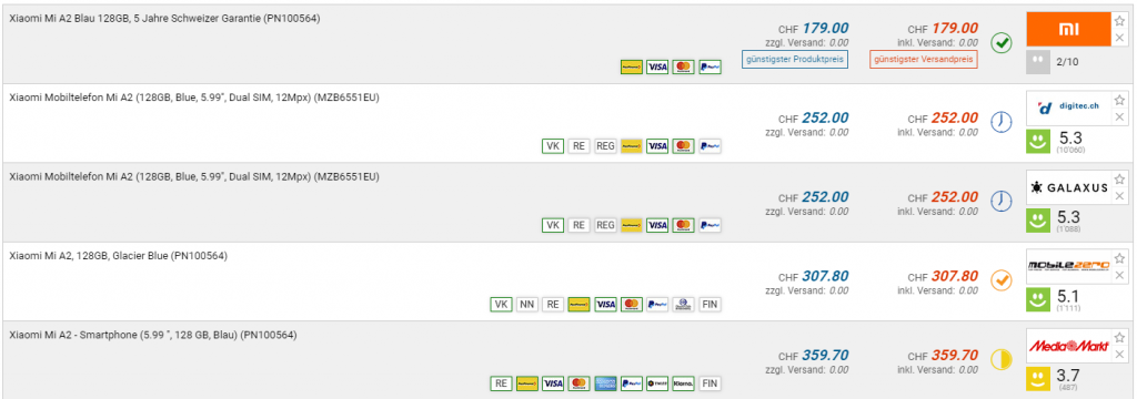 Im Mi-Store gibt es das XIAOMI Mi A2 für den neuen Bestpreis von CHF 179.-. Der vorherige Bestpreis war CHF 217.-. Der zweitbeste Preis beträgt CHF 252.-.