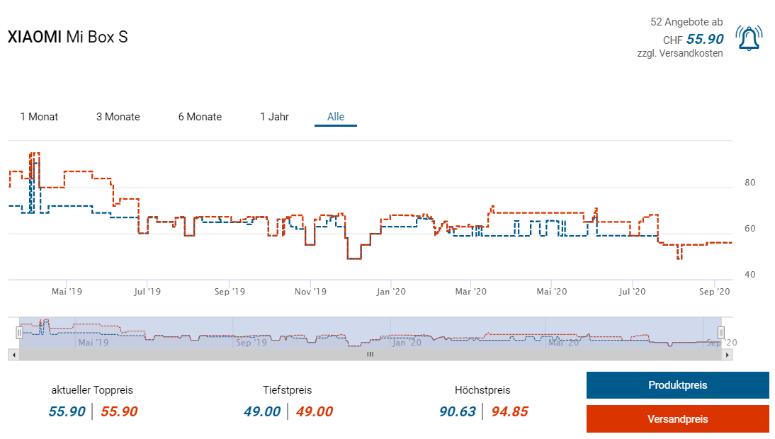 Bei Interdiscount gibts derzeit die Xiaomi Mi Box S 8GB in Aktion für knapp 56 Franken. Scheinbar solls sie vor wenigen Tagen sogar für 49 Franken gegeben haben, einen Deal dazu konnte ich allerdings nicht finden.