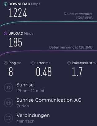 Ich weiss nicht was ihr habt, bei mir funktioniert 5G sogar mit Sunrise Prepaid wunderbar. Gerade mit dem iPhone 12 mini speed test gemacht.