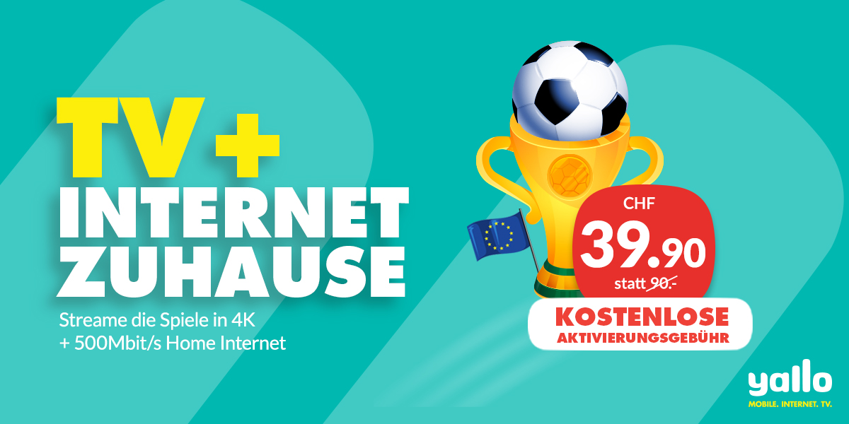 Für kurze Zeit gibt es das yallo Home Cable M mit 500 Mbit/s inkl. TV für schlappe CHF 39.90. Die Aktivierungsgebühr von CHF 99.- entfällt bei dieser Aktion gar!