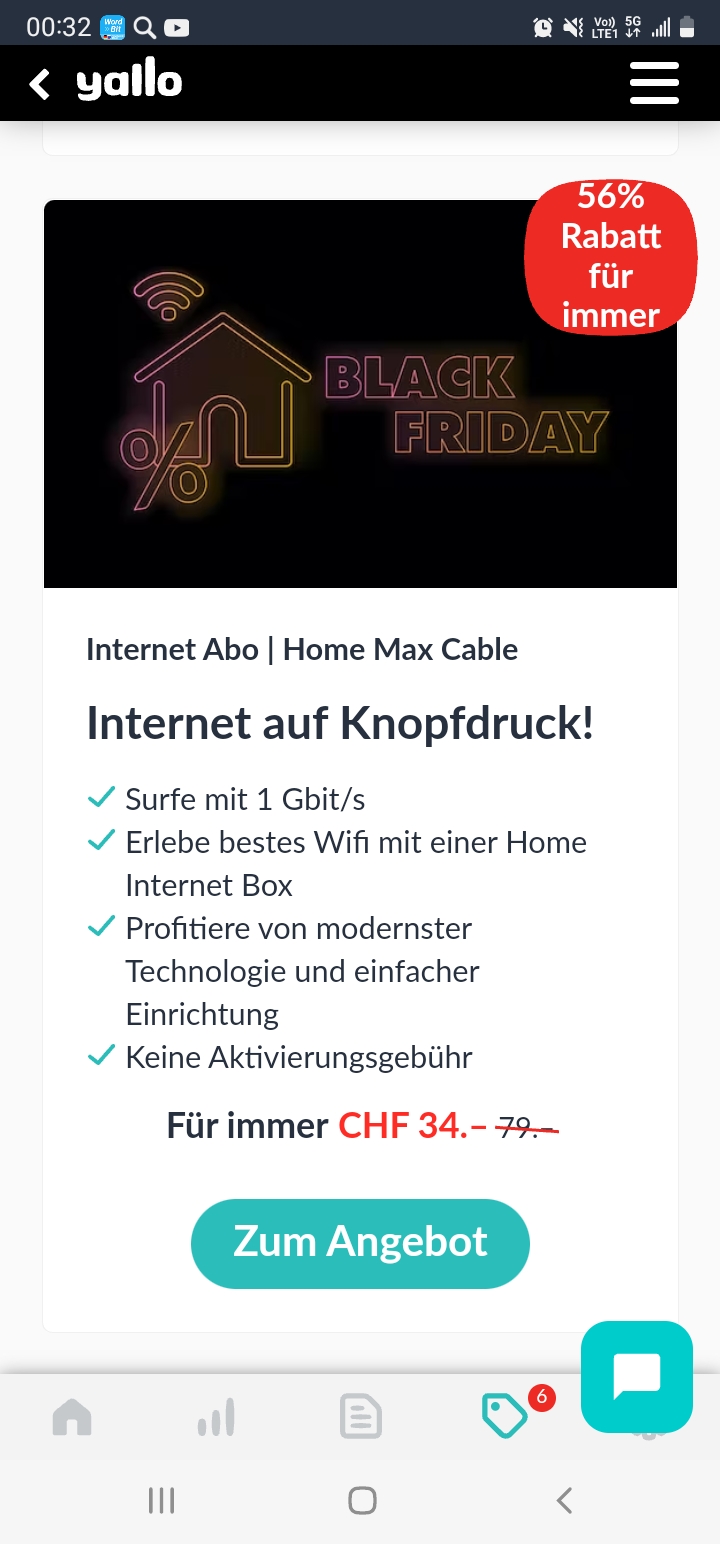 Bei yallo profitiert ihr von einem weiteren super Abo-Deal fürs Zuhause. Mit dem Internet-Abo yallo Home Max profitiert ihr nämlich von der besten verfügbaren Geschwindigkeit an eurem Einsatzort, egal ob ihr einen Kabel- oder Glasfaseranschluss habt.