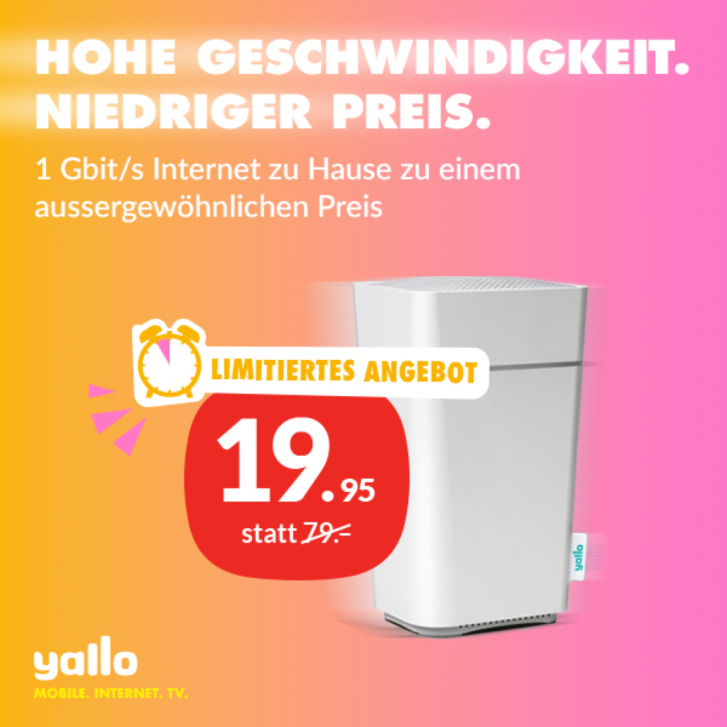 Nur für wenige Stunden - hol dir 1 Gbit/s Internet für zu Hause für CHF 19.95!
