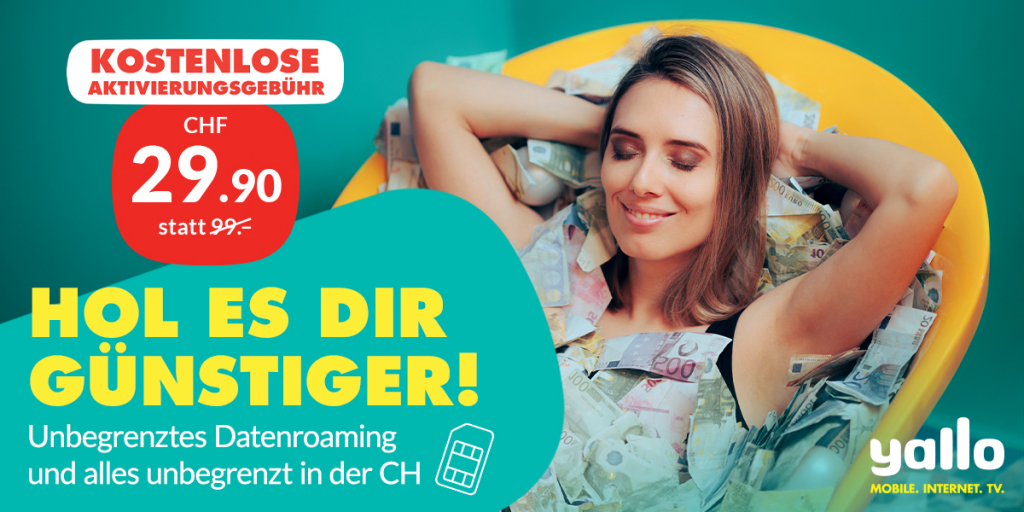 Bei yallo gibt’s wieder ein tolles Angebot für Mobilabos! Bis zum 02.04. könnt ihr euch das Abo top europe für CHF 29.90 / Mt. statt CHF 99.- sichern. Dieses bietet euch folgende Leistungen: