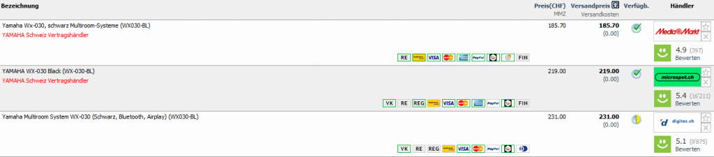 Bei MediaMarkt gibt es gerade die YAMAHA MusicCast WX-030 in Schwarz für 185.70 CHF.