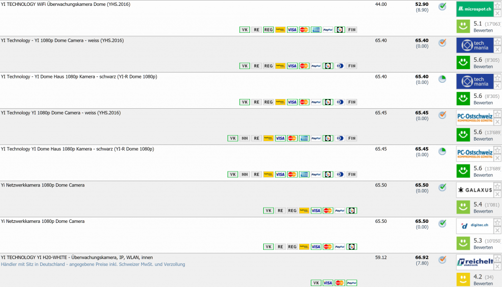 Bei microspot gibt’s gerade die YI TECHNOLOGY WiFi Überwachungskamera Dome für CHF 44.- Preis gilt nur bei Abholung an einem der vielen Pick-Up Standorte. Für die Lieferung käme noch einmal CHF 8.90 0bendrauf, wenn man nichts anderes bestellt.