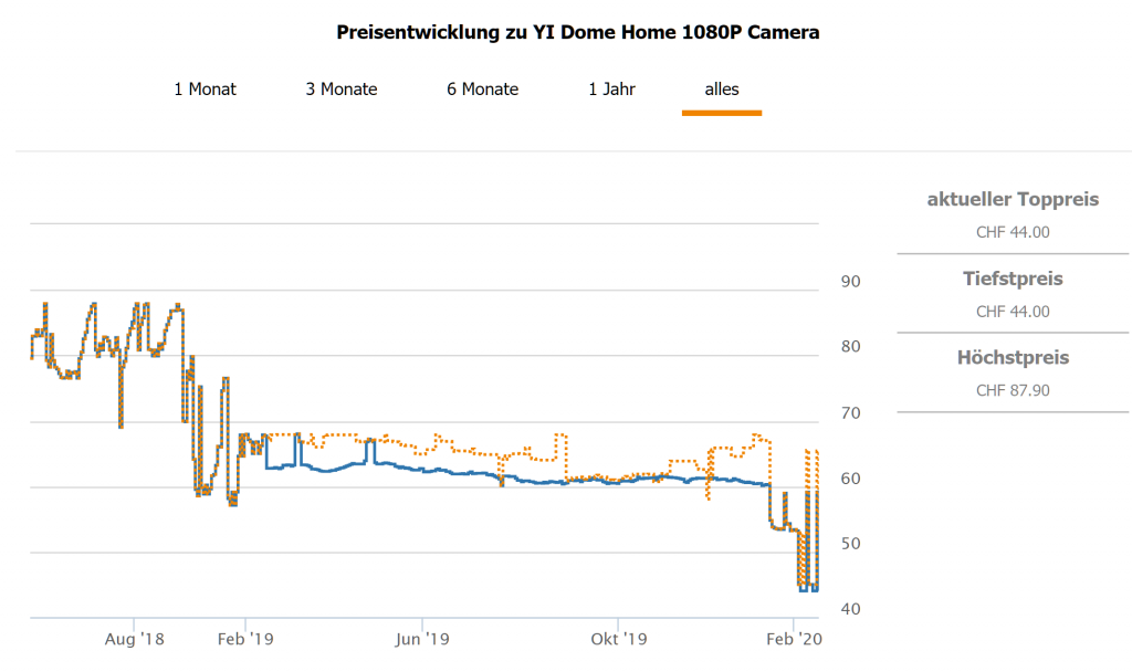 Zweitbester Preis liegt bei CHF 65.40 Die Kamera war in den letzten Tagen immer mal wieder für 44.- erhältlich.