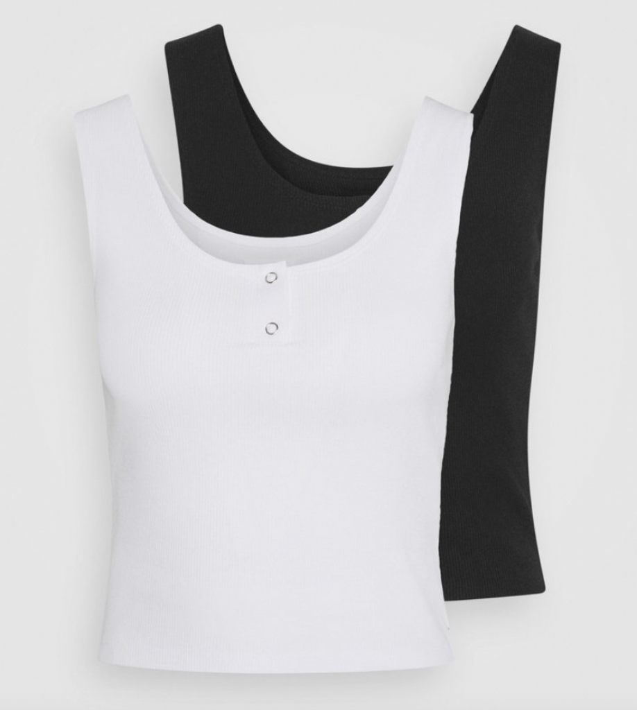 Das Set ist in schwarz/weiss sowie schwarz/grau (für 10 Franken) in den Grössen S, M, L und XL erhältlich. Es ist ärmellos und besteht aus einem angenehmen Rippmaterial.