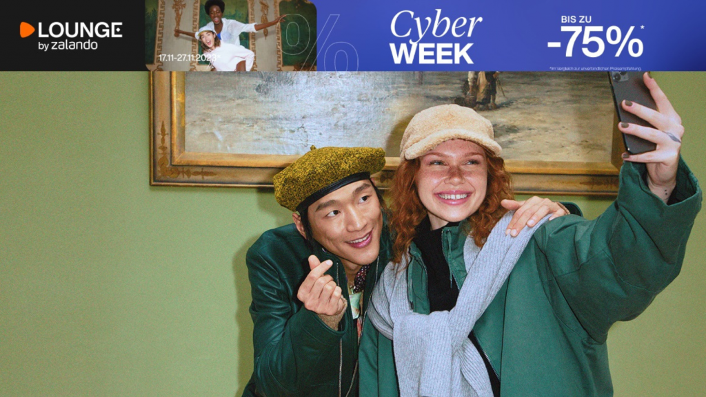 Genießen Sie unsere Angebote zur Cyber Week & Black Friday, vom 17.11. bis zum 27.11. Entdecken Sie Mode- und Wohnschätze mit Einsparungen von bis zu 75%* im Vergleich zum UVP. Tauchen Sie ein in eine Woche unschlagbarer Blitzverkäufe von Top-Marken wie Lacoste, New Balance, AIGNER, Timberland, Happy Socks und vielen mehr. Dies ist Ihre exklusive Einladung in die Welt hochwertiger Mode mit spektakulären Rabatten. Entdecken Sie die Angebote zur Cyber Week heute bei Lounge by Zalando!